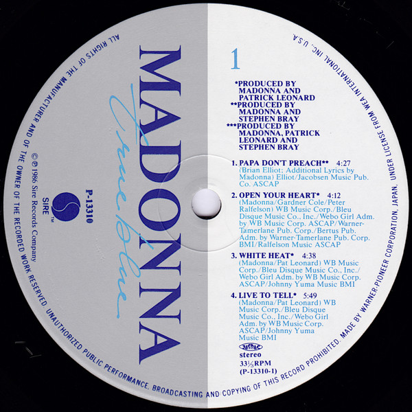 True Blue = トゥルー・ブルー – マドンナ* – LP – Pre Owned Vinyl (Arrives in 21days)
