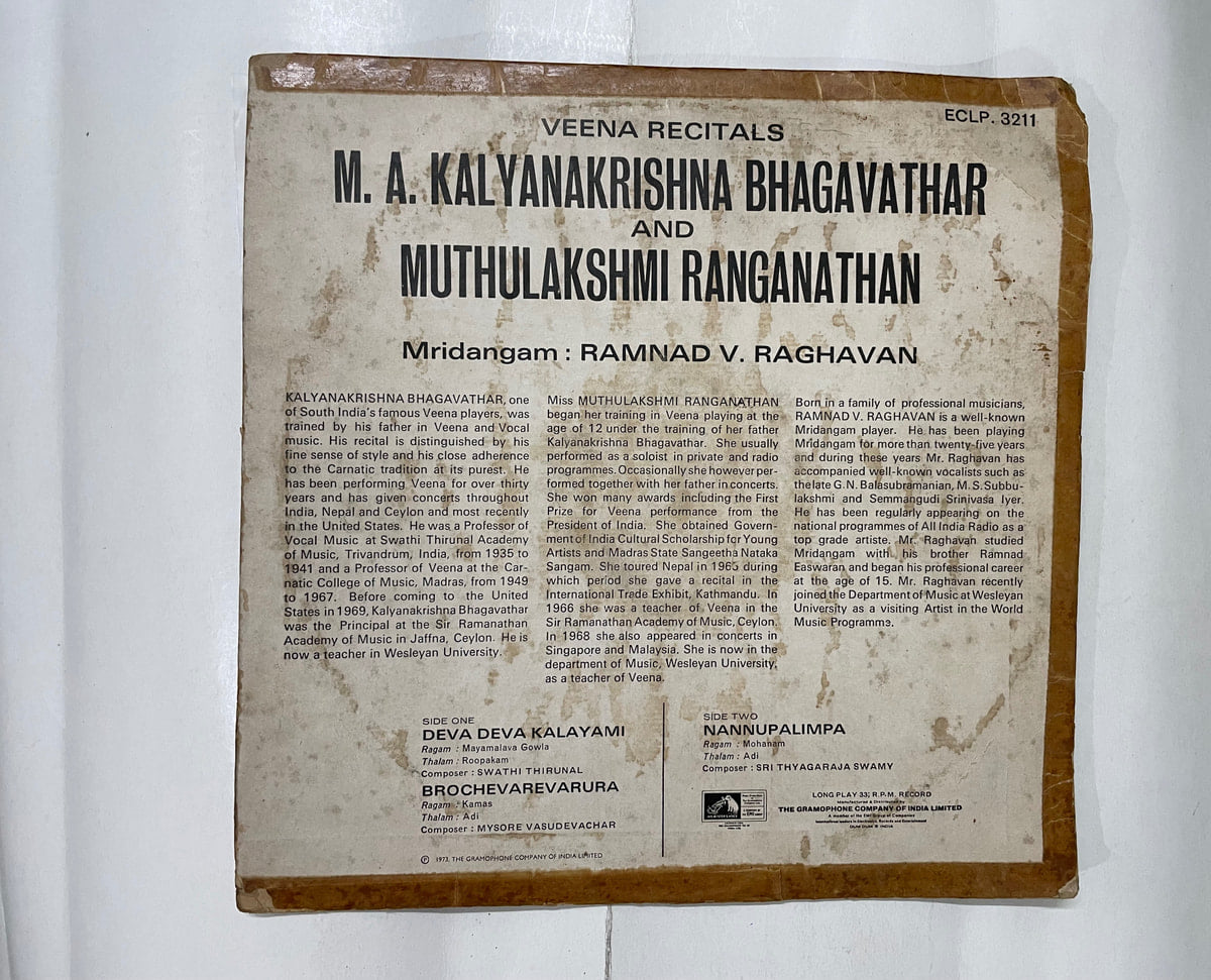 Veena Recitals – M. A. Kalyanakrishna Bhagavathar Used Vinyl LP Record