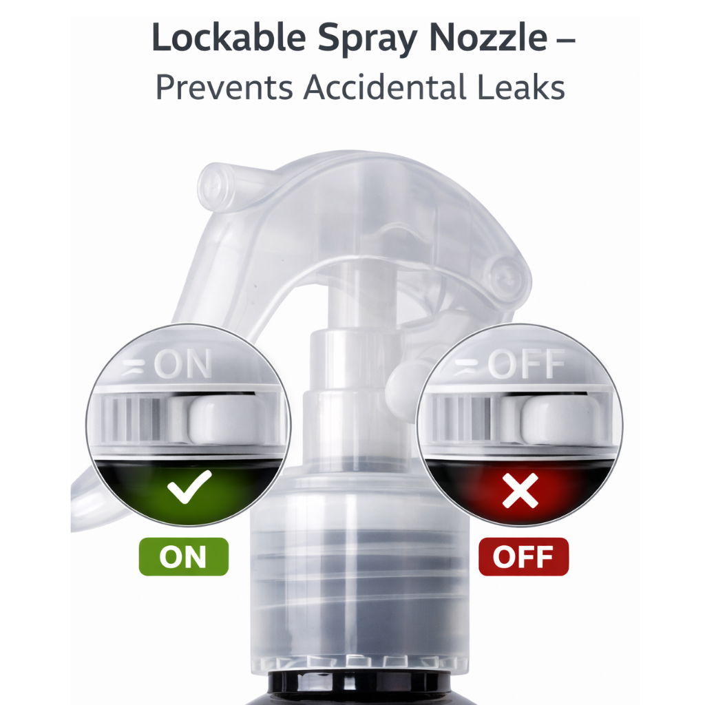 Packaging: Lockable spray bottle