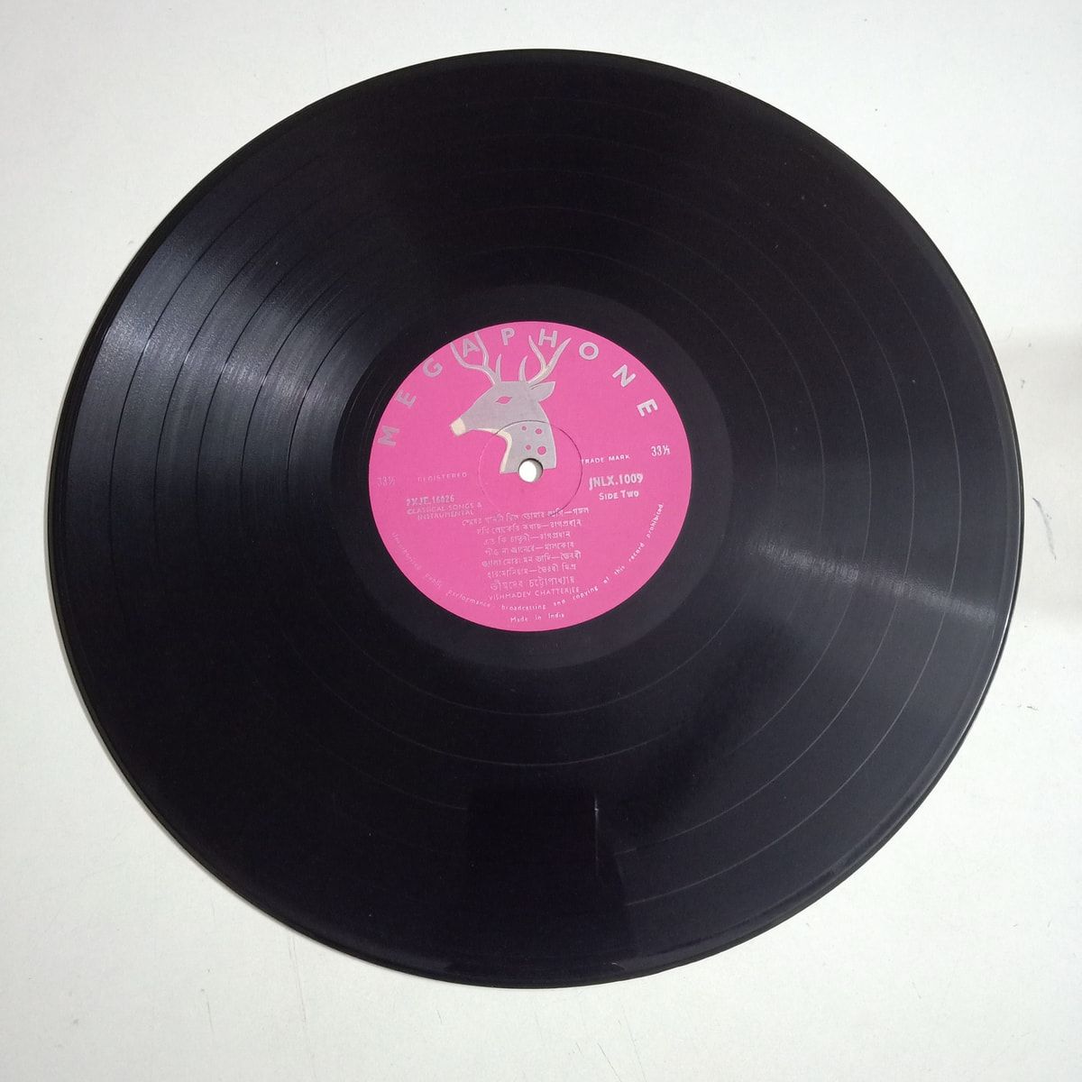 This 1980 Megaphone LP captures Vishmadev Chatterjee right where he shines: rich, resonant vocals cut straight to the bone, with that unmistakable Bengali warmth only vintage pressings seem to hold. The record itself plays in Very Good Minus condition — some light wear, but the music comes through full and honest, with that gentle analog haze collectors chase. The cover, though, has clearly lived a life and sits in Poor shape: scuffs, edge wear, and the kind of patina that tells its own story of shelves, turntables, and Sunday afternoons. If you care more about the sound and the legacy than a showroom-ready jacket, this copy hits the sweet spot between playable and affordable. It’s a lovely slice of Indian classical history, cut at 33 RPM on a single LP that still has plenty of nights left in it. Buy Vishmadev Chatterjee vinyl LP in Very Good Minus condition Today!
