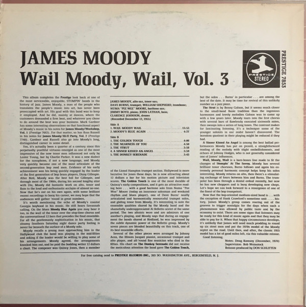 Wail Moody, Wail, Vol. 3 – James Moody – LP – Pre Owned Vinyl (Arrives in 21days)