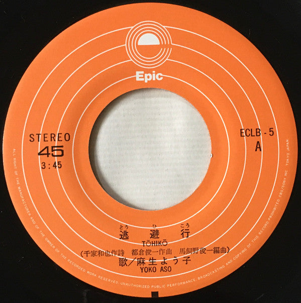 Discover the charm of 逃避行 by Yoko Aso, a Japanese Import vinyl EP in Very Good Plus (VG+) condition. Buy it today!