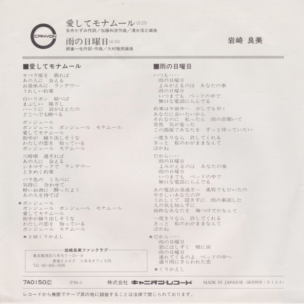 Discover the enchanting sounds of 愛してモナムール by Yoshimi Iwasaki. Buy Japanese Import vinyl EP in Very Good Plus (VG+) condition Today!