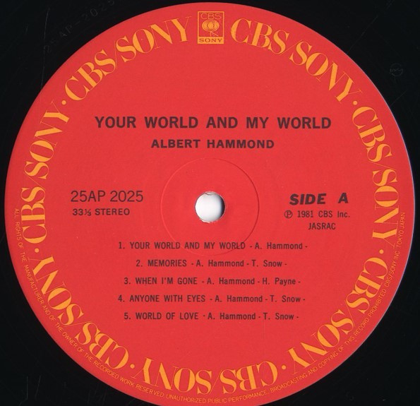 Your World And My World – Albert Hammond – LP – Pre Owned Vinyl (Arrives in 21days)